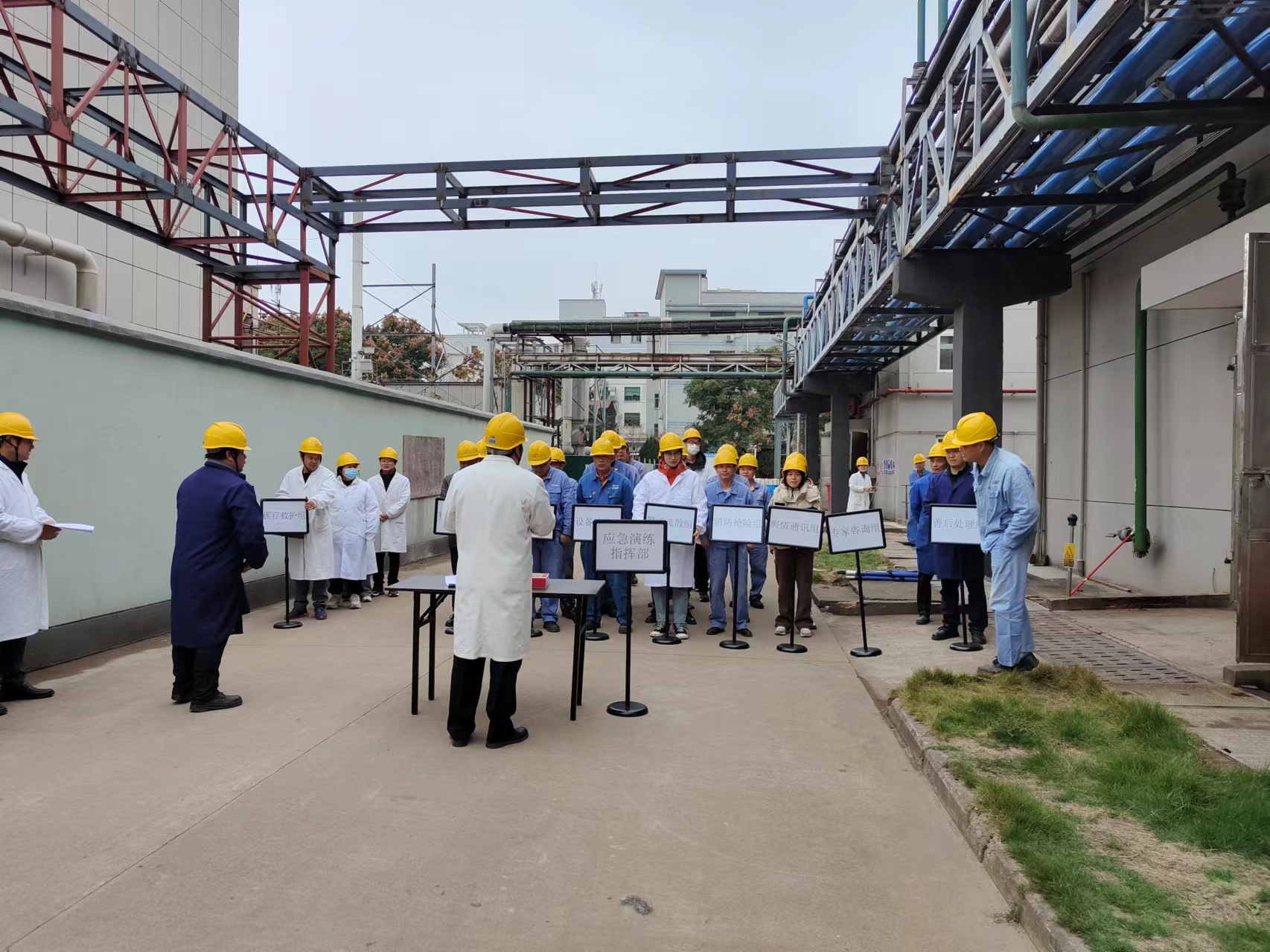 為了對公司應(yīng)急預(yù)案體系、事故應(yīng)急處置流程、應(yīng)急隊伍、救援物資與裝備、日常應(yīng)急培訓(xùn)與演練等進(jìn)行檢驗和評價,進(jìn)一步增強公司應(yīng)對化工生產(chǎn)突發(fā)事故的快速反應(yīng)能力,提高應(yīng)急處置過程中關(guān)鍵要素的處置能力和協(xié)調(diào)作戰(zhàn)能力,切實保障員工生命和公司財產(chǎn)的安全,浙江華義于2023年11月30日組織了本次事故綜合應(yīng)急演練活動。演練歷時半小時。